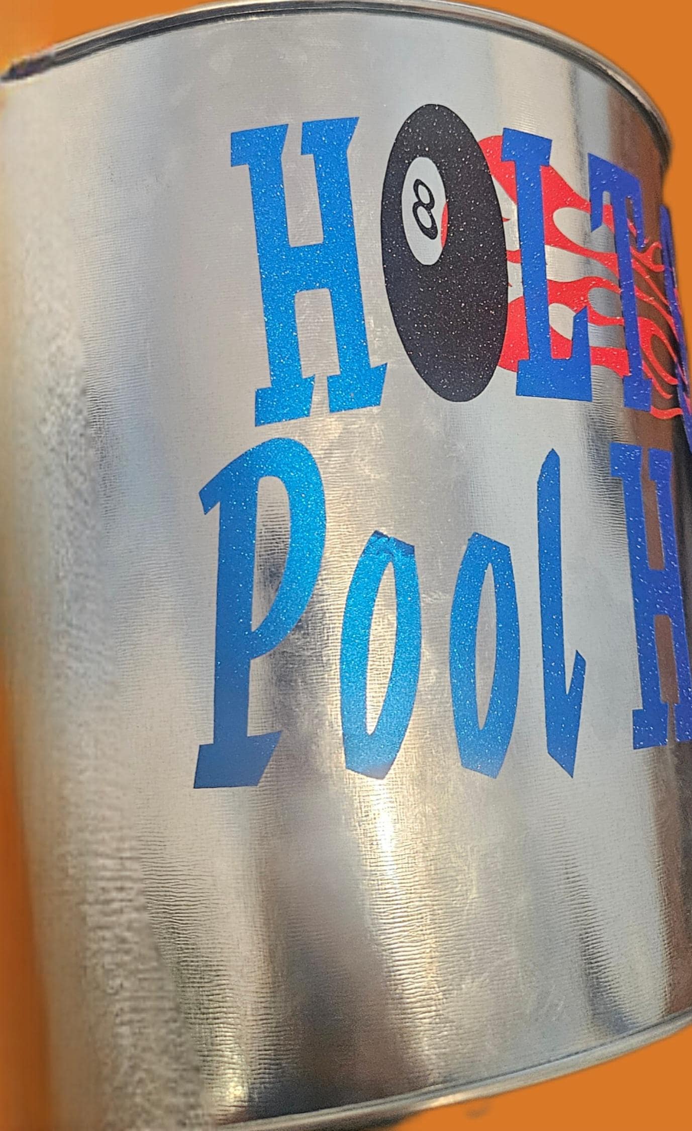 Add a touch of flair and function to your space with this personalized bucket.  Names, activities, dates, special occasions, anything you desire can be added.