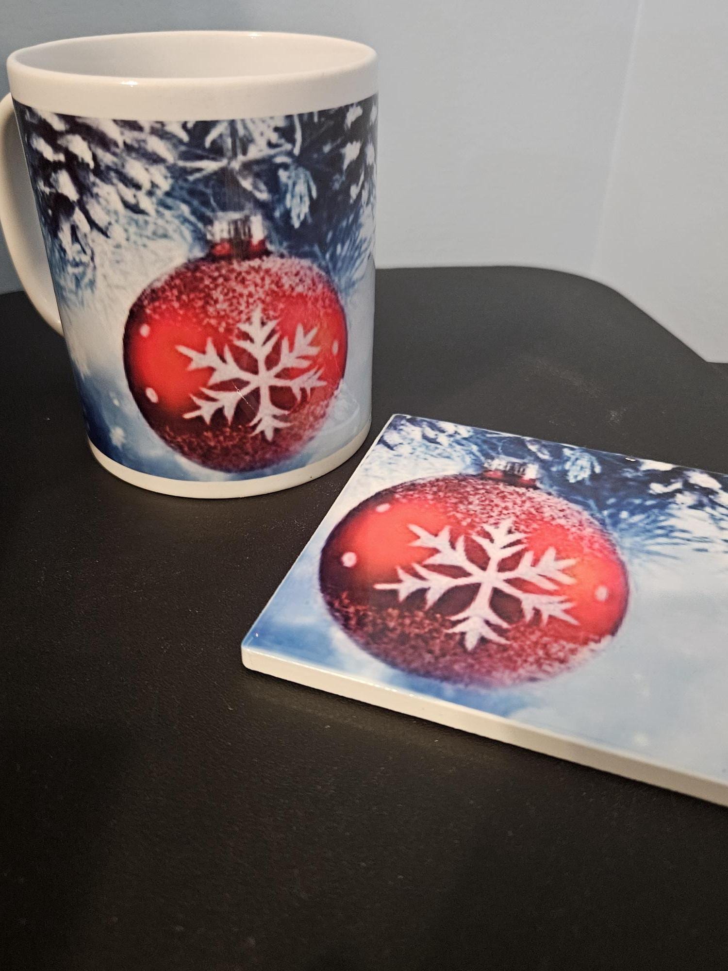 These coasters aren’t just eye candy—they’re crafted for durability, with a smooth finish that protects your surfaces from spills and heat. Whether you're sipping cocoa by the fire or hosting a festive dinner, they’re the perfect accent to elevate your décor.