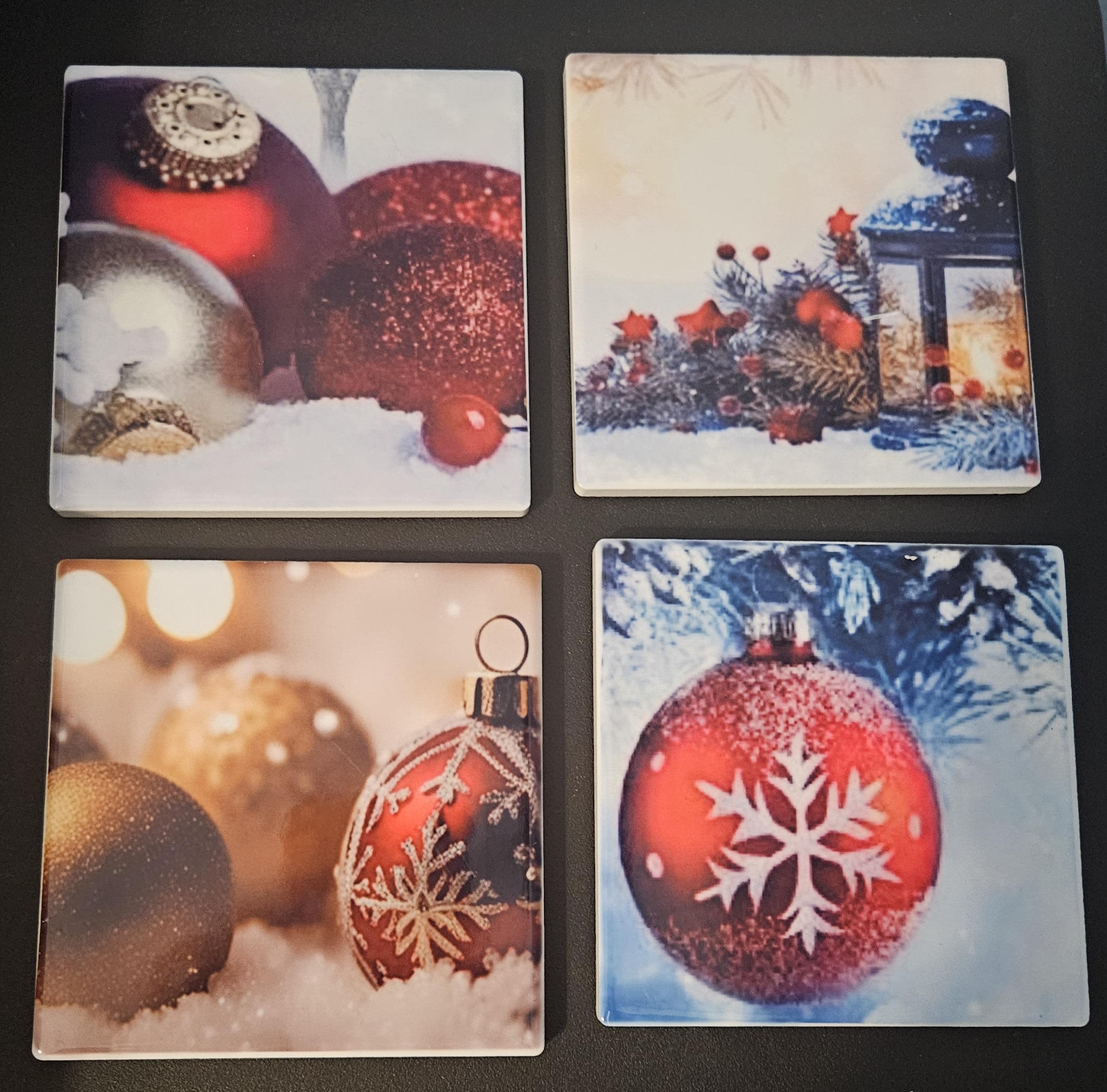 Transform your holiday gatherings with our festive Christmas-themed coasters (also available with matching mugs)—a perfect blend of charm, elegance, and seasonal spirit. Each set features four beautifully designed tiles, showcasing classic holiday imagery that captures the warmth and wonder of the season: